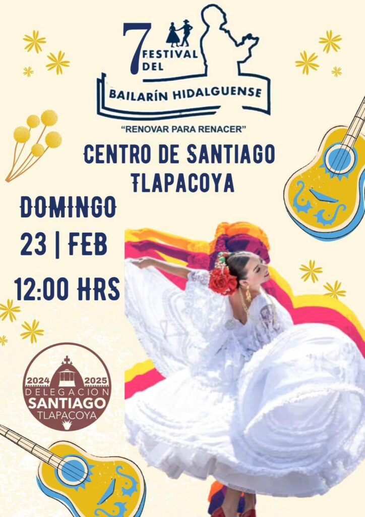 El Festival del Bailarín Hidalguense 2025 llegará a Santiago Tlapacoya el próximo 23 de febrero, reuniendo a más de 400 bailarines en un evento gratuito que busca promover la danza folklórica y la identidad cultural de Hidalgo.