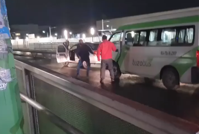 Ocurrió la noche de este sábado frente a la central de autobuses, esta vez el afectado fue un operador de la ruta alimentadora del Tuzobús quien fue noqueado por un automovilista particular quien además de lanzarle un golpe al rostro, toma al chofer de los hombros para azotarlo brutalmente contra el asfalto y propinarle ya tirado dos golpes más con la mano abierta y posterioremnte se dirige a su vehículo.