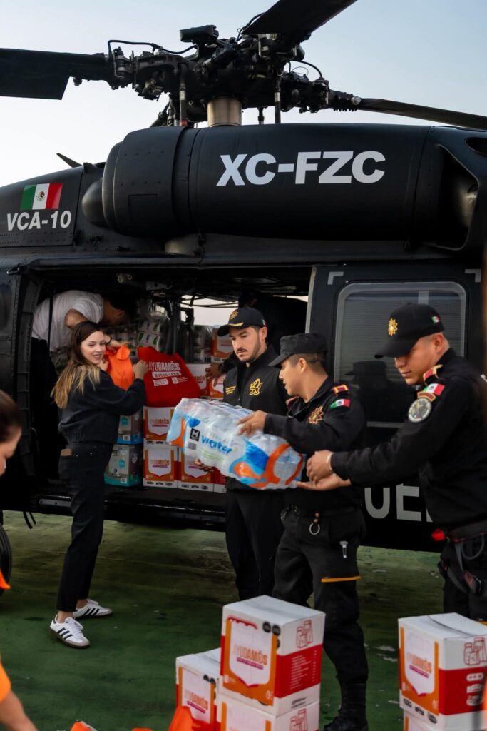 Dos helicópteros participaron en la operación: un Black Hawk transportó tres toneladas de víveres, mientras que la aeronave de Protección Civil trasladó rescatistas a las zonas más afectadas.
