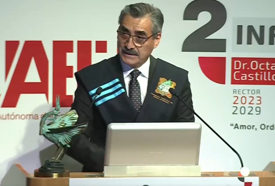 El rector de la Universidad Autónoma del Estado de Hidalgo (UAEH), Octavio Castillo Acosta, presentó este viernes el Segundo Informe de la Administración Universitaria 2023-2029.