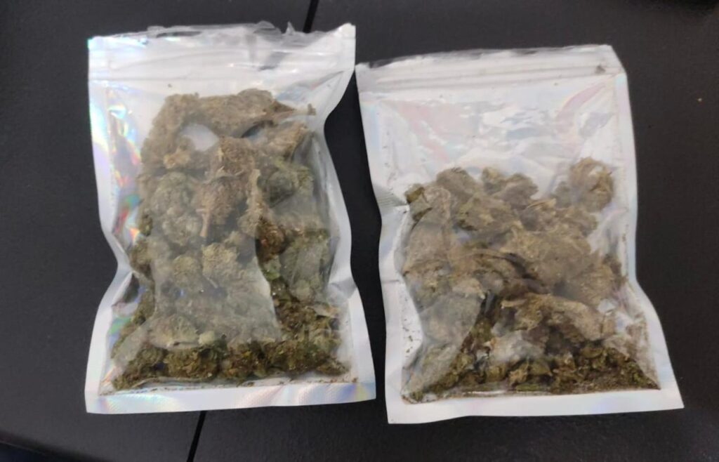 Al realizarle una revisión, le fueron aseguradas seis bolsas de plástico transparente con marihuana, dos teléfonos móviles, una mochila negra y una imitación de arma de fuego de plástico.