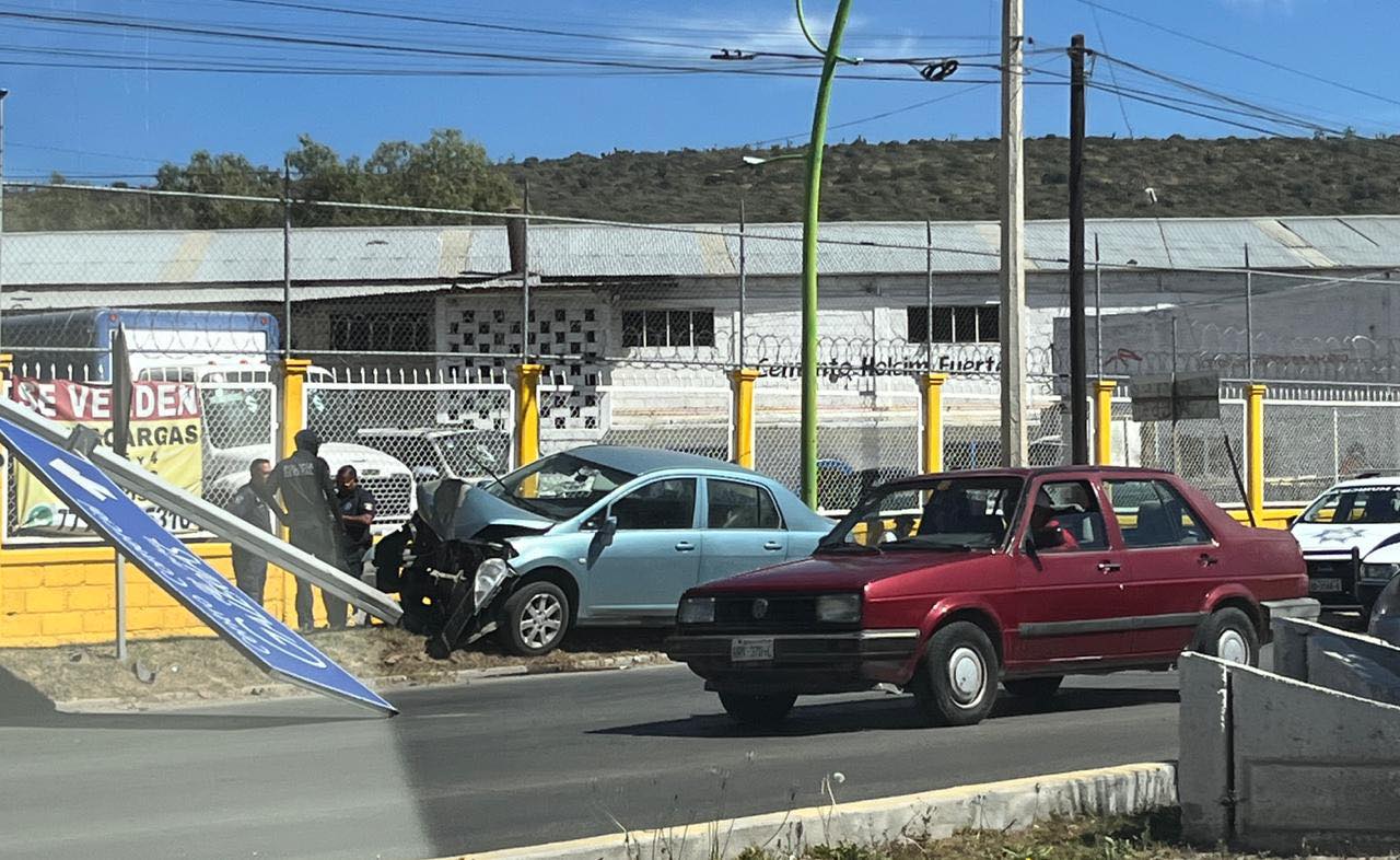Un aparatoso incidente ocurrió este sábado en el bulevar Colosio, de Pachuca, donde un automóvil particular terminó impactándose contra una estructura de señalética justo en el acceso a Bosques del Peñar, con dirección hacia la glorieta 24 Horas.