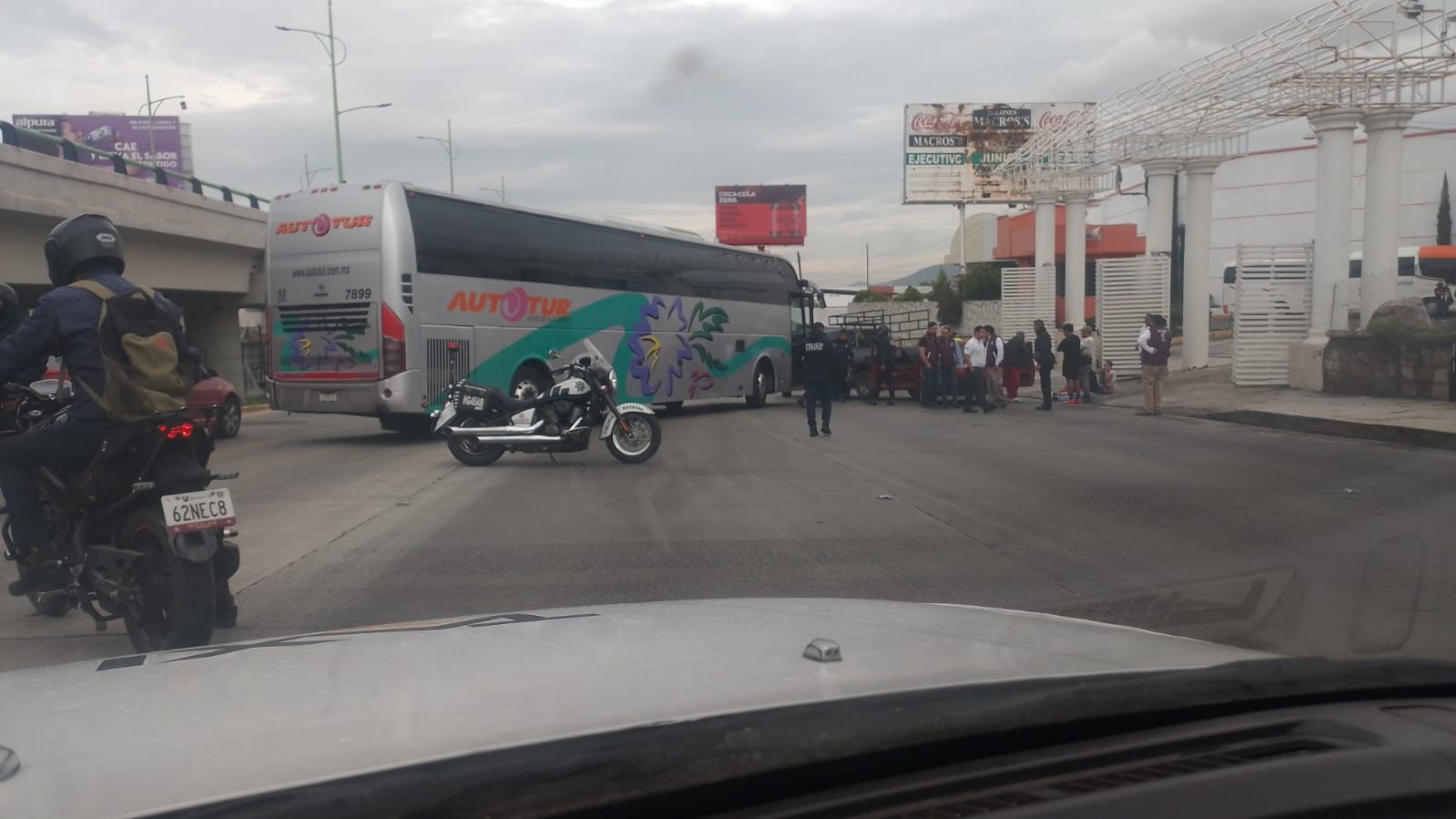 Elementos de tránsito acudieron al lugar para realizar el abanderamiento y agilizar la circulación, sin embargo, las filas de autos ya se extienden, afectando a quienes se dirigen hacia puntos clave como Zona Plateada y el bulevar Felipe Ángeles.