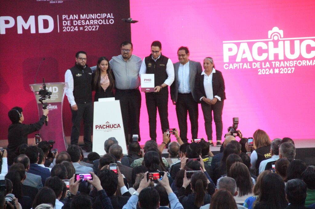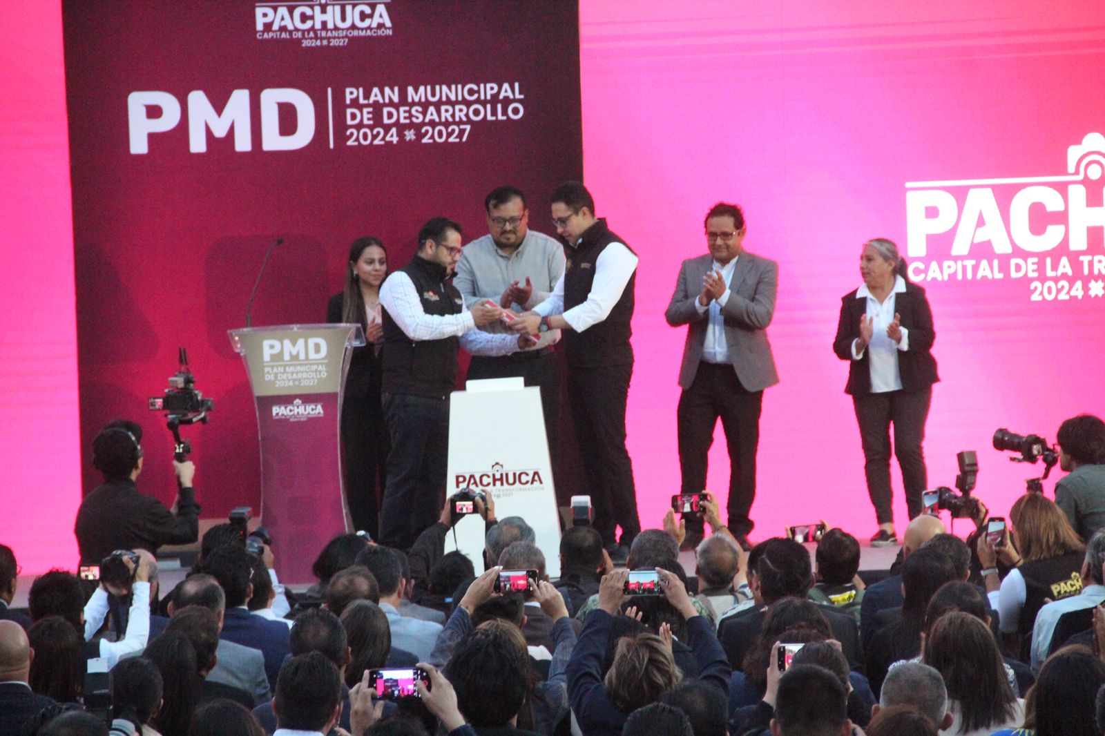 Esta tarde, en el Parque Hidalgo y ante la presencia de autoridades municipales y estatales, representantes de la sociedad civil y ciudadanía en general, el presidente municipal de Pachuca, Jorge Alberto Reyes Hernández, presentó oficialmente el Plan Municipal de Desarrollo 2024–2027, el cual servirá como hoja de ruta para las acciones de su administración durante los próximos tres años.