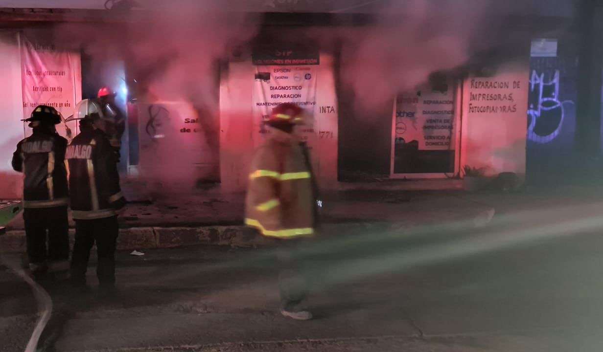 La noche del lunes se registró un incendio en un comercio dedicado a la venta y renta de impresoras, ubicado en la carretera Pachuca-Tulancingo, frente al hotel Brasilia y a un costado de la UAEH.