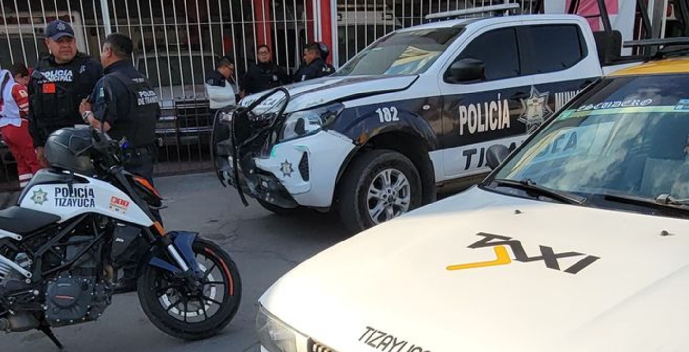Una patrulla recién entregada por la alcaldesa de Tizayuca chocó contra la parte trasera de una camioneta de transporte público de pasajeros, la tarde de este jueves, en la Avenida Juárez, a la altura de la Cruz Roja.