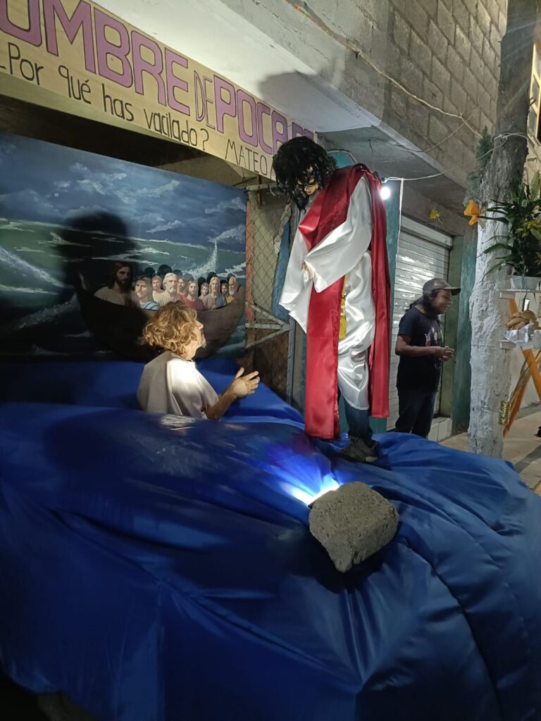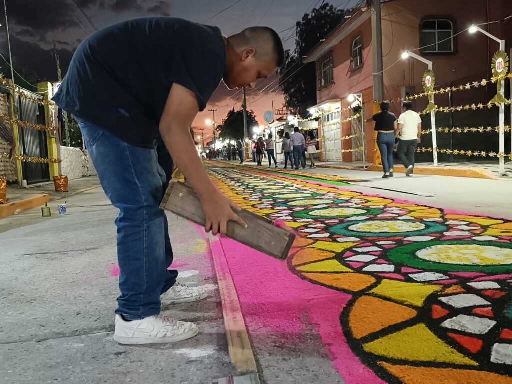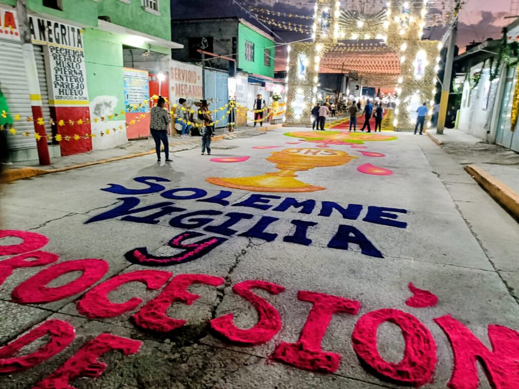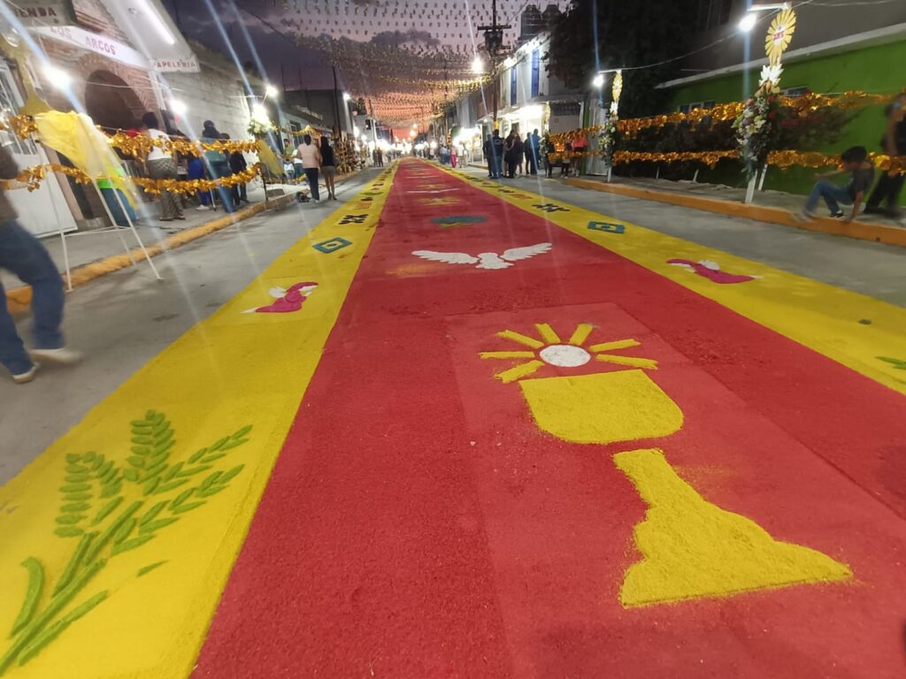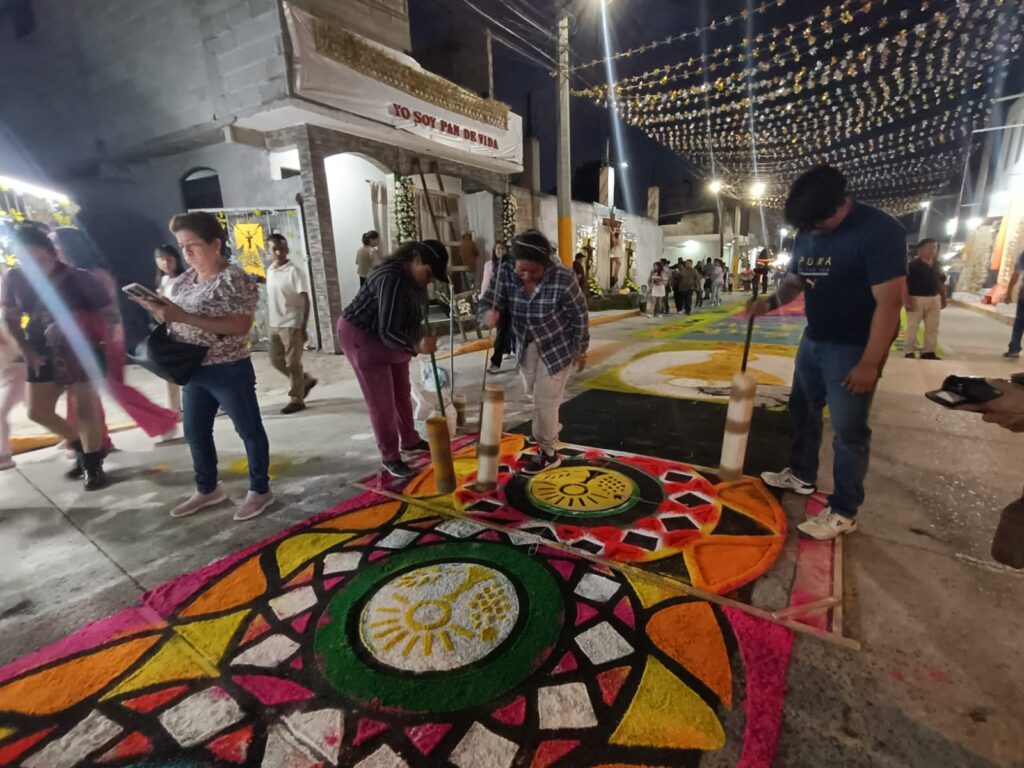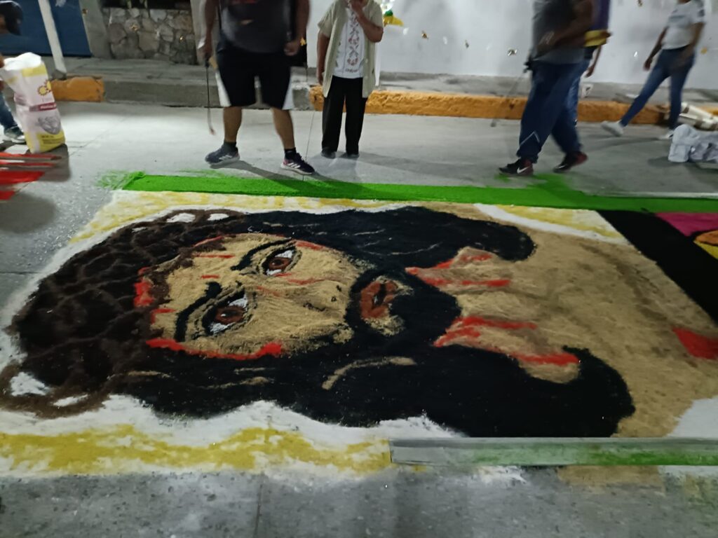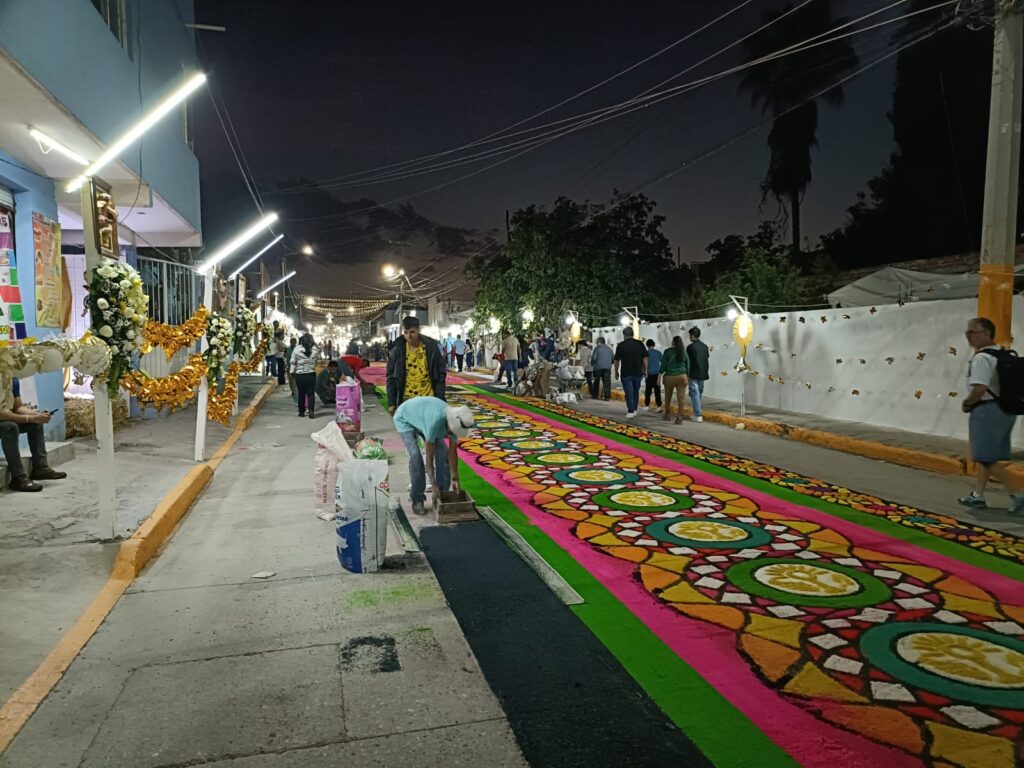 Sin embargo, cuando parecía que no habría tapetes este año, los vecinos de Avenida del Ejido sorprendieron con los tapetes y los adornos que colocaron, en donde incluso se pudo notar canastas con mucho más pan que en las calles previas, además de los cuadros vivientes que se colocaron en distintas casas.