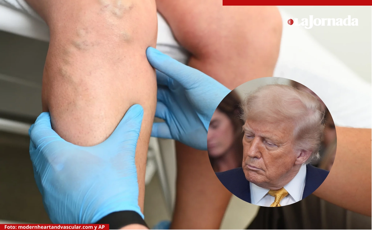El presidente Donald Trump fue sometido a una evaluación médica tras presentar inflamación en la parte baja de las piernas, y los resultados arrojaron un diagnóstico de “insuficiencia venosa crónica”, además de hematomas en las manos, según informó este jueves la portavoz de la Casa Blanca, Karoline Leavitt. La insuficiencia venosa crónica (IVC) es, de acuerdo con la Guía de Referencia Rápida del IMSS, una condición patológica del sistema venoso que se caracteriza por la incapacidad funcional adecuada del retorno sanguíneo.