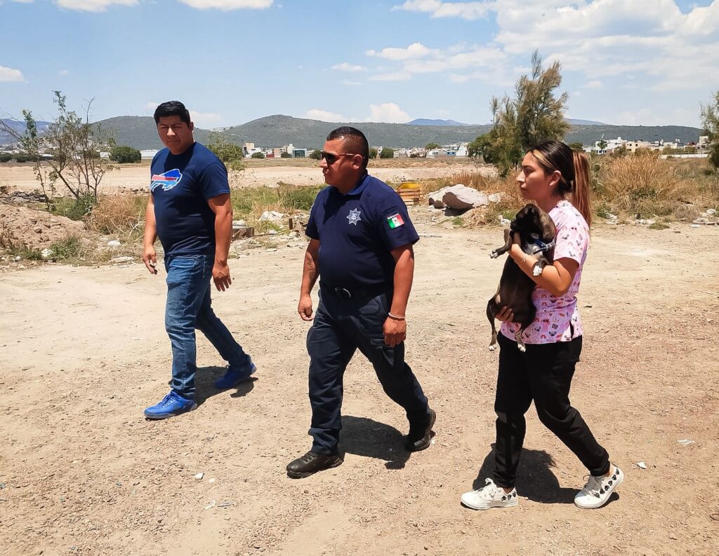 Personal del Centro de Atención Integral Veterinario Municipal (CAIVM) y elementos de la unidad K9 de la Secretaría de Seguridad Pública, Tránsito y Vialidad de Pachuca atendieron un reporte ciudadano sobre una perra que permanecía amarrada a un semáforo en el bulevar Nuevo Hidalgo, aparentemente bajo el cuidado de una persona que trabaja en la zona.