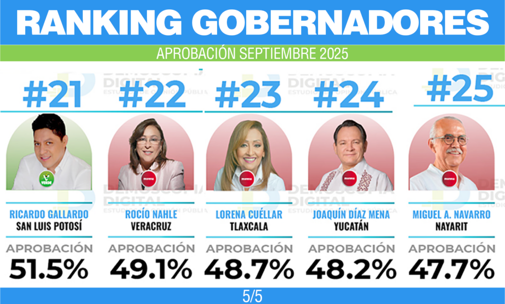 Ranking de aprobación de gobernadores en septiembre Top 5