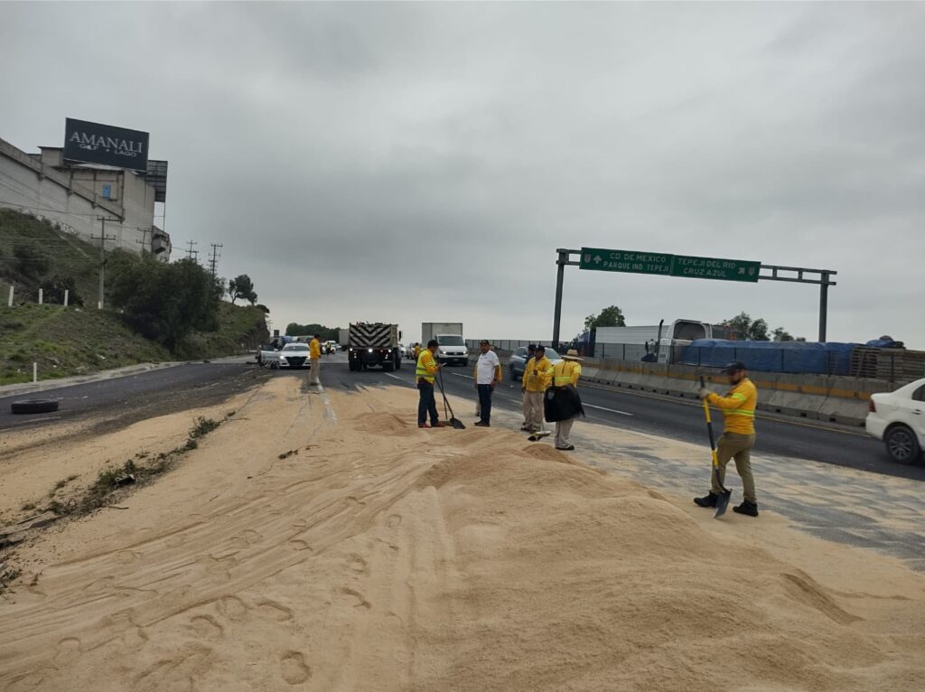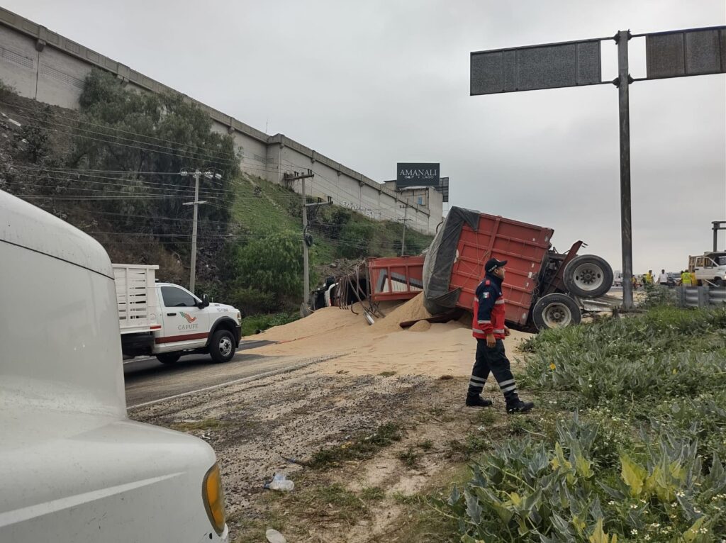 De acuerdo con los reportes disponibles, el incidente se suscitó alrededor de las 7:00 de la mañana, horario en el que un tractocamión de doble semirremolque se volcó sobre la vialidad antes referida, la unidad trasportaba un promedio de 80 toneladas de salvado, alimento para ganado, el cual quedó regado en la carretera.