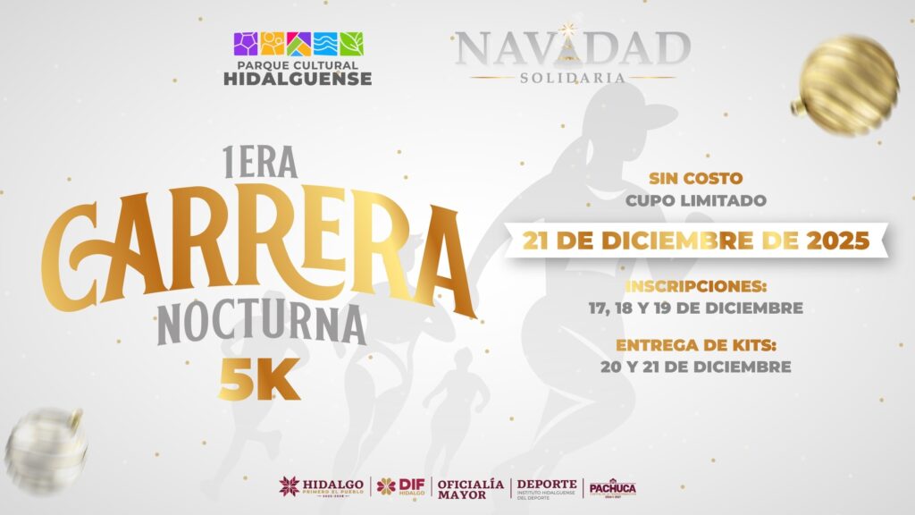 El Parque Cultural Hidalguense anunció la realización de la primera Carrera Nocturna 5K, un evento gratuito y con cupo limitado que forma parte de la iniciativa Navidad Solidaria 2025.