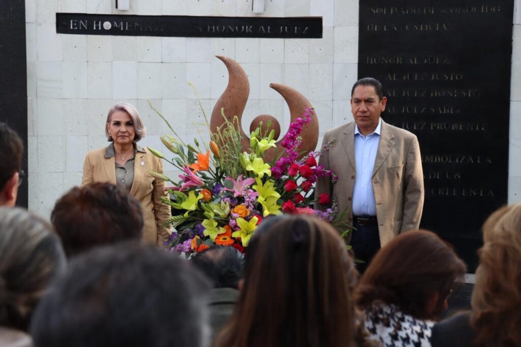 Durante una ceremonia conmemorativa realizada en el Monumento al Juez, ubicado en la sede del Poder Judicial, la magistrada reconoció el trabajo de magistradas, magistrados, juezas y jueces que diariamente desempeñan su labor para garantizar el respeto a los derechos y la vigencia del Estado de Derecho.