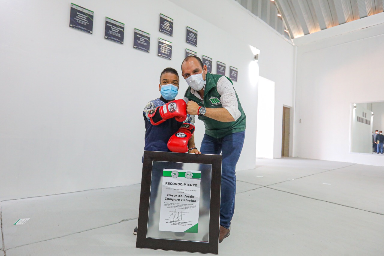 Durante la inauguración de las instalaciones remodeladas, las autoridades locales realizaron el corte de listón y la develación de placa conmemorativa en honor a boxeadores originaros del municipio que han competido en torneos nacionales.