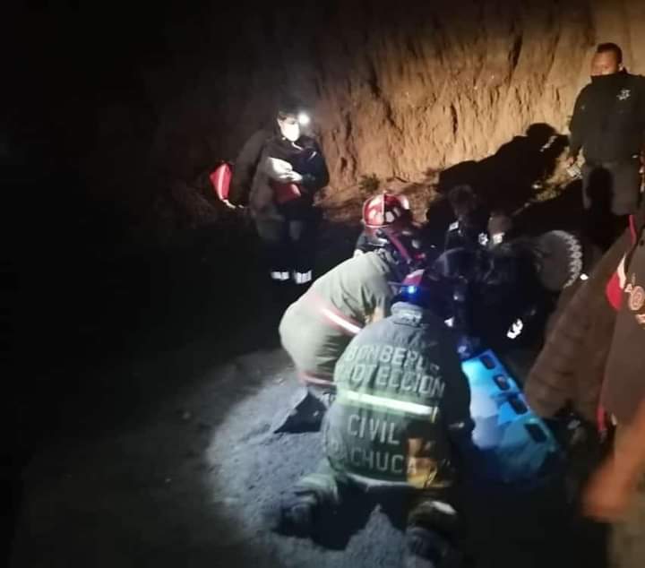 Policías municipales y estatales rescataron a un menor de edad que la noche del martes sufrió una caída en los jales ubicados a la altura del Boulevard Nuevo Hidalgo de Pachuca.
