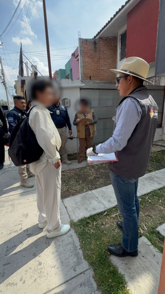 Ahí, familiar de la tutora de la canina autorizó y permitió el acceso al domicilio para la inspección física del animal de color caja, pecho blanco y raza única, quien resultó con maltrato pues contaba con fiebre, lesiones aparentes en la oreja izquierda y en la pierna derecha, cuya temporalidad es de 24 a 36 horas.