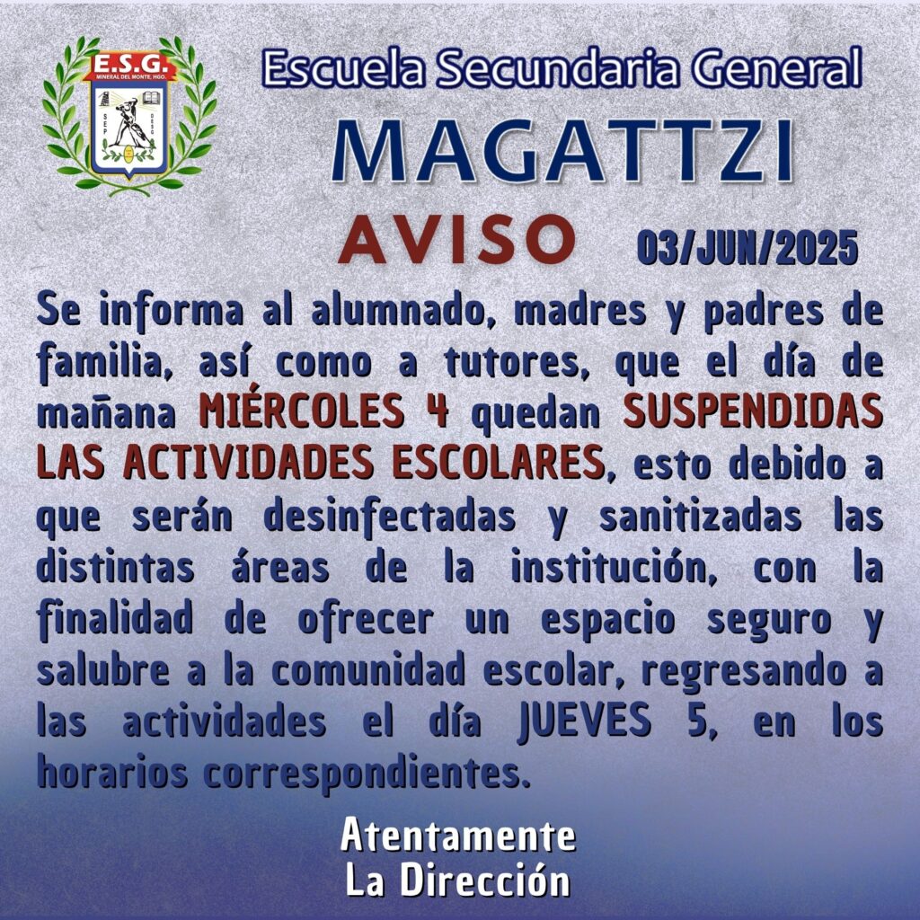 De acuerdo con un comunicado emitido por la dirección de la escuela, el regreso a clases está programado para el jueves 5 de junio, una vez que se garantice que las instalaciones se encuentren en condiciones seguras y salubres para estudiantes y personal docente.