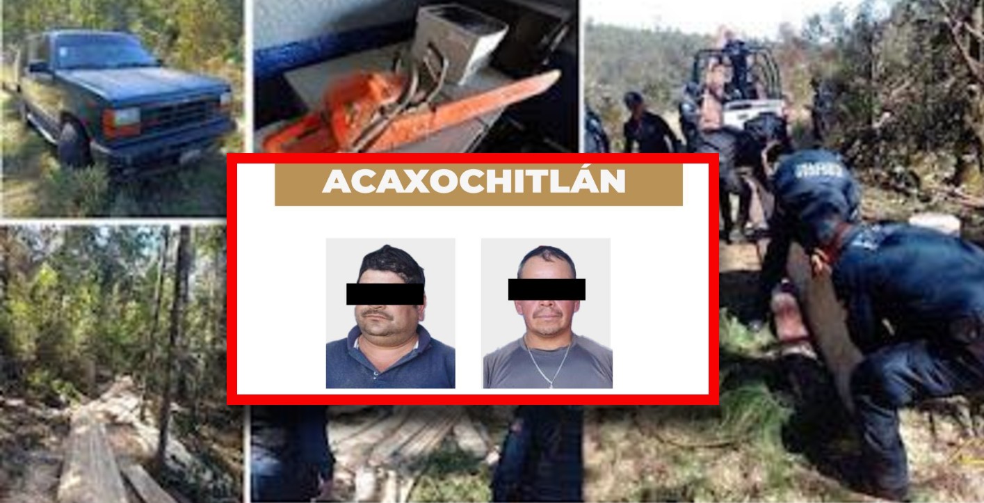 Las autoridades indicaron que, en el municipio de Acaxochitlán, específicamente en la comunidad de Agua Linda, fueron detenidos dos sujetos quienes fueron sorprendidos en flagrancia de una actividad ilegal. Los detenidos fueron identificados con las iniciales P.H.C y L.A.C., ambos originarios del municipio de Honey, Estado de Puebla; además aseguraron una camioneta tipo Ford y una motosierra.