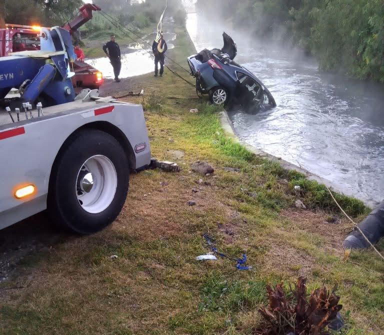 La mañana de este sábado, otro vehículo particular cayó al canal de aguas negras Requena, a la altura de la zona conocida como La Línea, en el municipio de Tezontepec de Aldama.