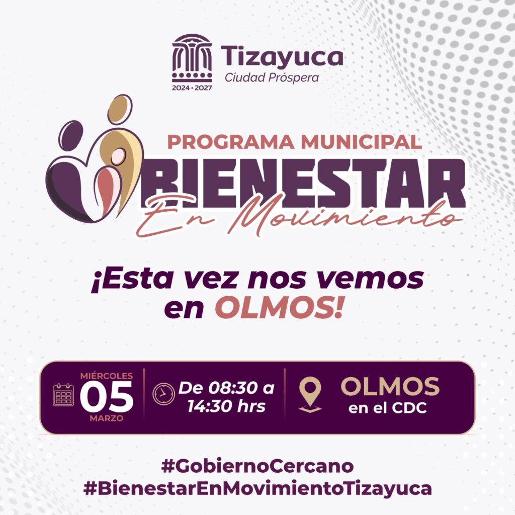 Como parte del programa Bienestar en Movimiento, la presidenta municipal Gretchen Atilano atenderá audiencias ciudadanas este miércoles 5 de marzo en la comunidad de Olmos, a partir de las 11:00 a. m., en el Centro de Desarrollo Comunitario (CDC).