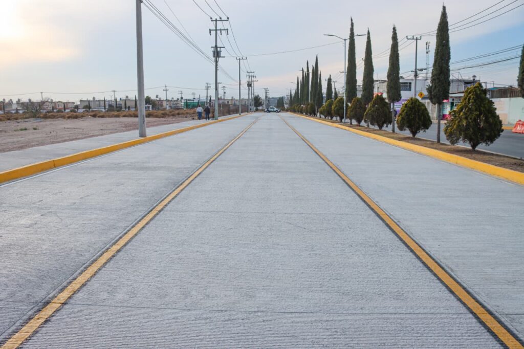 El Gobierno Municipal de Tizayuca entregó una obra de pavimentación con concreto hidráulico en el bulevar de acceso al fraccionamiento Haciendas de Tizayuca, específicamente en el hombro izquierdo, una zona con alta carga vehicular y crecimiento habitacional constante.