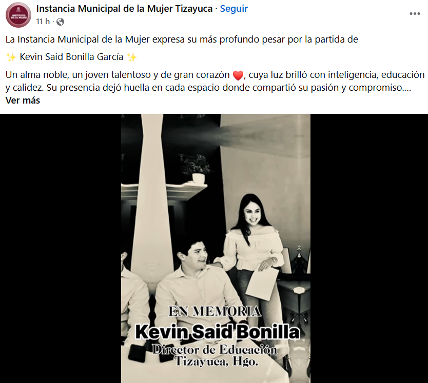 La tarde del pasado jueves, funcionarios y distintos personajes de Tizayuca informaron sobre el lamentable fallecimiento de Kevin Said Bonilla, quien se desempeñaba como director de educación de ese municipio.