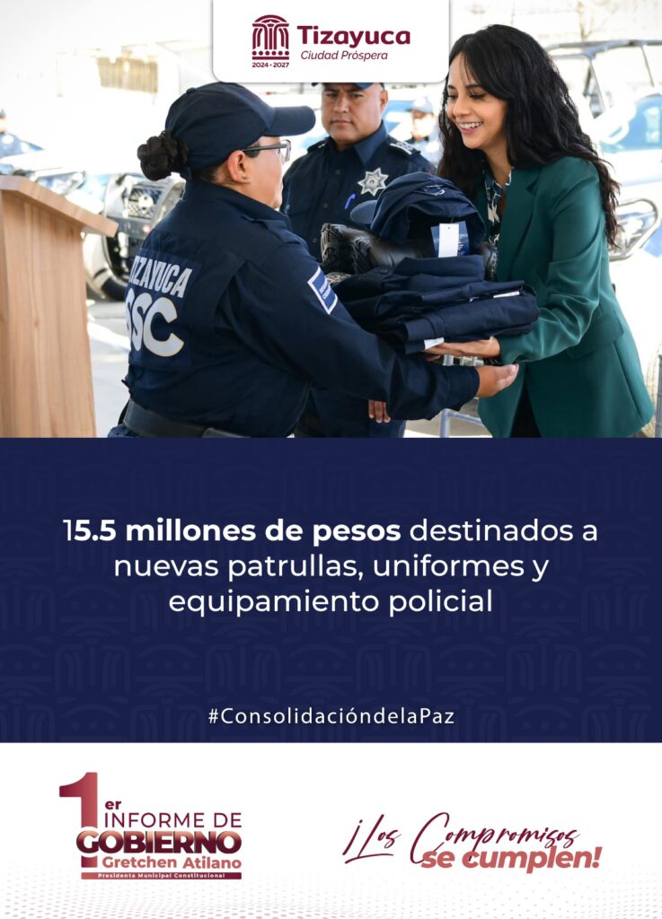 Con el objetivo de fortalecer la seguridad y la tranquilidad de las familias tizayuquenses, en el marco de la presentación del Primer Informe de Gobierno, la administración municipal informa que ha llevado a cabo una serie de acciones significativas en el ámbito de la seguridad pública. Al respecto, la alcaldesa Gretchen Atilano enfatizó que “la seguridad se construye en conjunto, sociedad y autoridades, abonando a la confianza, equipamiento y presencia constante. Cada acción realizada por nuestra corporación refleja el compromiso de garantizar la tranquilidad de las familias tizayuquenses”. Este enfoque ha permitido que la Secretaría de Seguridad Ciudadana (SSC) opere con mayor eficacia y cercanía a la comunidad.
