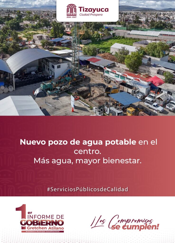 Con el objetivo de garantizar el acceso al agua potable y mejorar la calidad de vida de los habitantes de Tizayuca, la presidenta municipal Gretchen Atilano avanza en la rehabilitación de un pozo que permitirá optimizar la distribución del vital líquido en las colonias del centro.