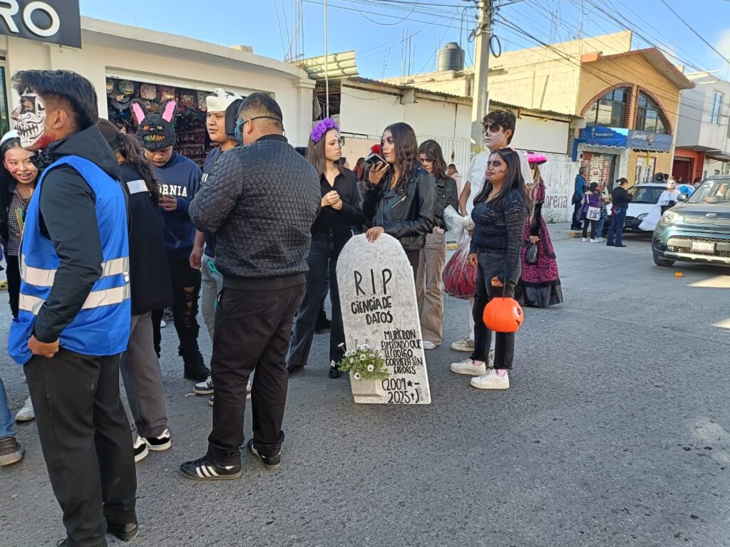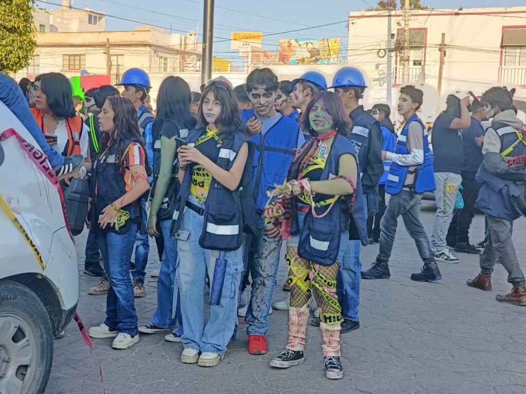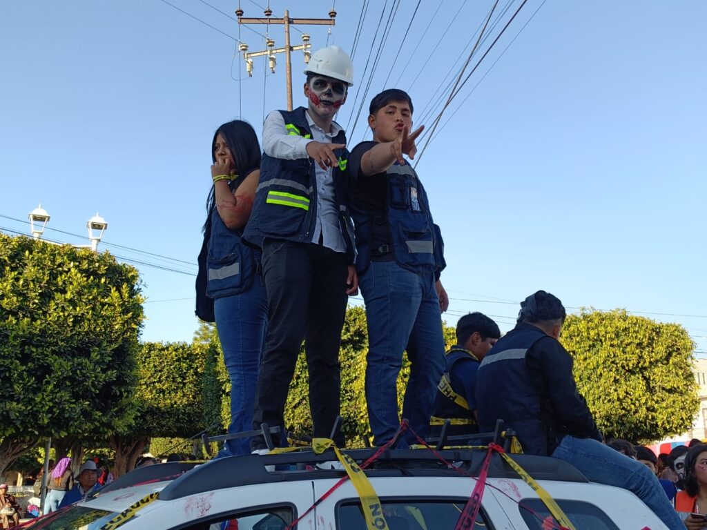 Además, se unieron al desfile los estudiantes de nivel medio superior, los cuales se organizaron de diversas formas, hubo quienes cumplieron con la etiqueta de ir como catrines y catrinas, mientras que otros decidieron recurrir a los disfraces que son típicos de Halloween, como asesinos seriales, zombies y máscaras terroríficas.