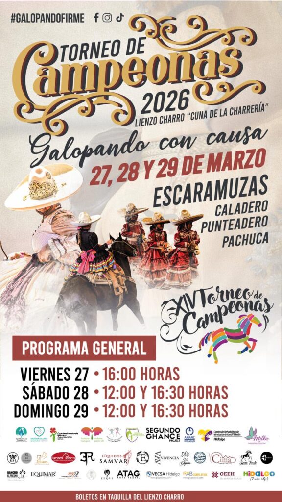 Hidalgo recibirá los días 27, 28 y 29 de marzo el XIV Torneo de Campeonas 2026, evento que busca destacar y reconocer la participación de las mujeres dentro de la charrería, una de las tradiciones más representativas del país.
