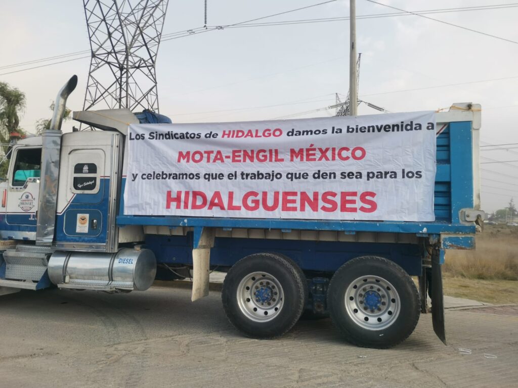 Según las lonas que colocaron los propios transportistas, la idea es dar la bienvenida a la empresa Mota-Engil, así como agradecer a la presidenta de México, Claudia Sheinbaum Pardo, por las obras federales que están llegando a la región de Tula y que permiten el trabajo de los trasportistas de Atitalaquia y Tlaxcoapan.