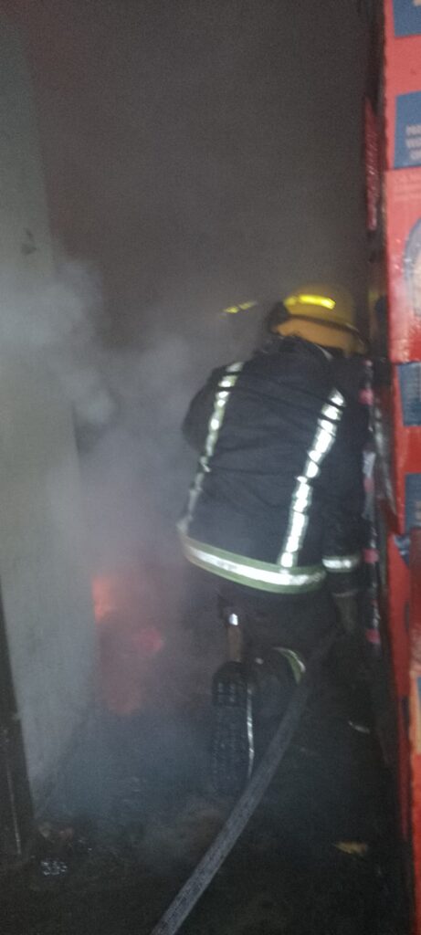 De acuerdo con los reportes oficiales, el fuego se originó presuntamente por un cortocircuito en un refrigerador, lo que generó la quema del mismo aparato y de productos de abarrotes almacenados en el sitio.