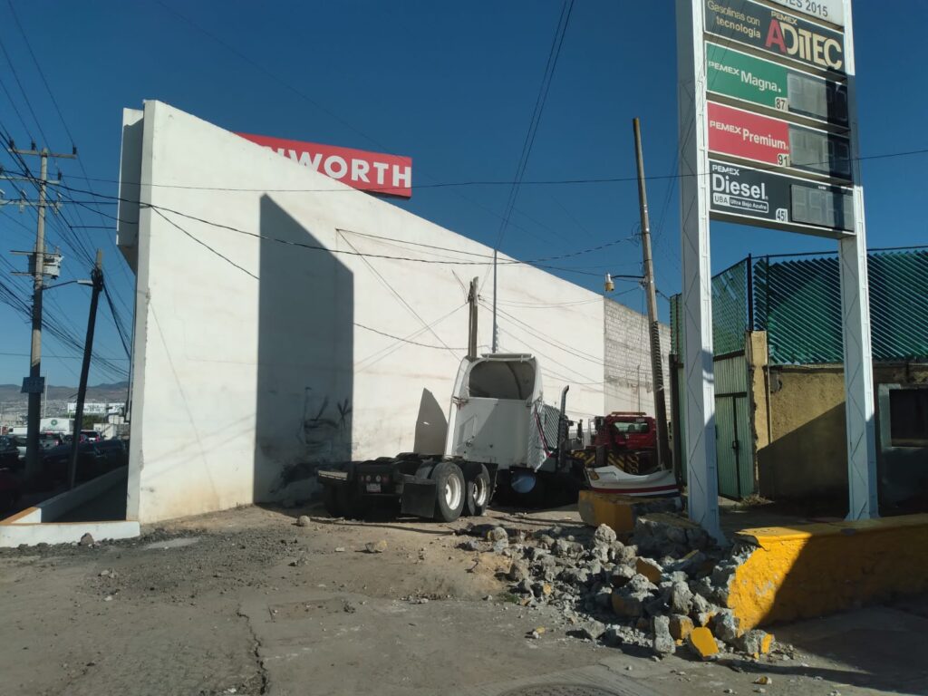 Al perder el control de la unidad, el vehículo terminó impactándose violentamente contra el muro de las instalaciones de tractocamiones Kenworth.