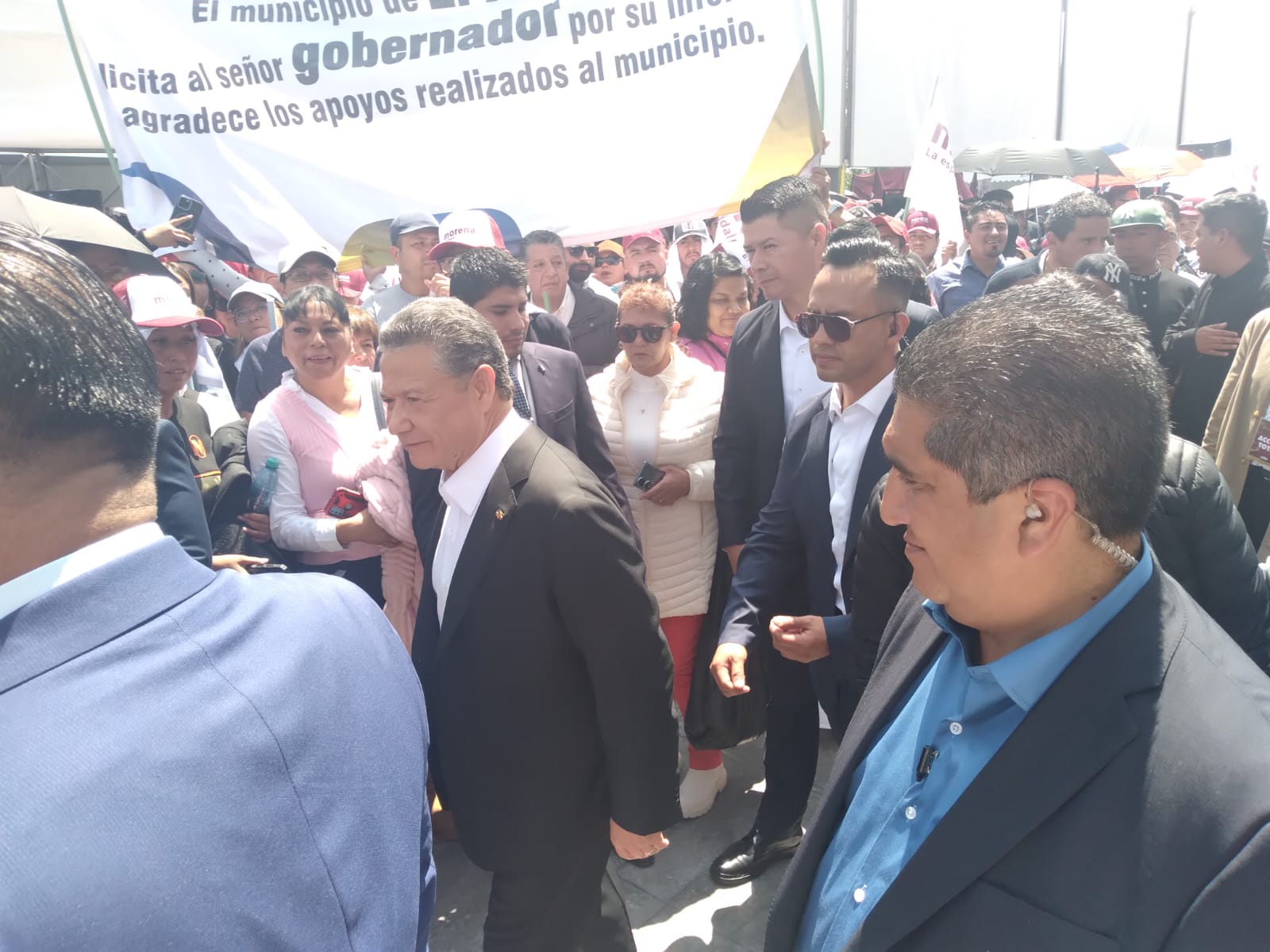 La gente recibía playeras con el logo del partido, mientras mantas de apoyo, de distintos grupos y municipios ondeaban al viento.
