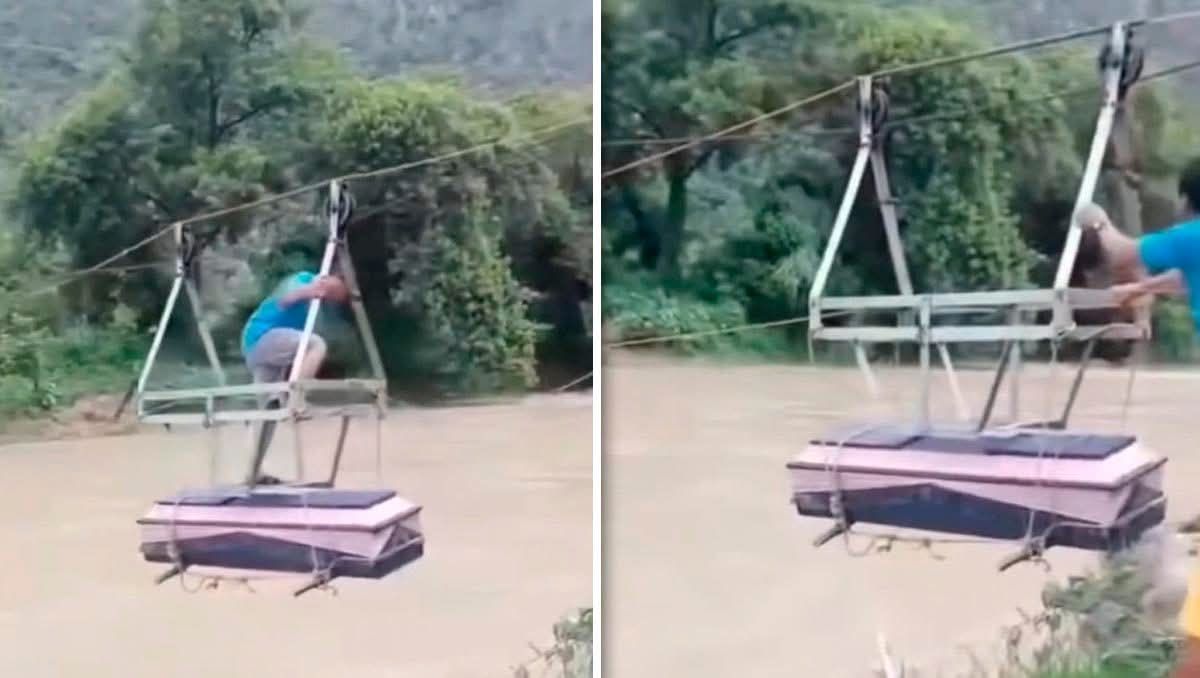 La comunidad de Vado Hondo, en el municipio de Jacala de Ledezma, Hidalgo, vive una situación crítica. Sin un puente que les permita cruzar de forma segura el río Amajac, habitantes han tenido que improvisar una tirolesa con una canastilla para trasladarse… incluso con ataúdes.