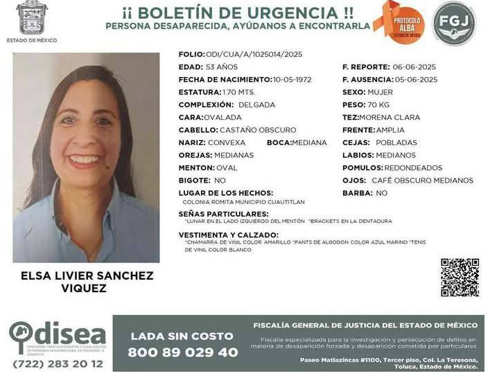 Elsa Livier fue vista por última vez el 5 de junio, cuando sus familiares perdieron contacto con ella. Su padre presentó una denuncia ante la Fiscalía del Estado de México y se emitió una ficha de búsqueda que fue difundida ampliamente en redes sociales.