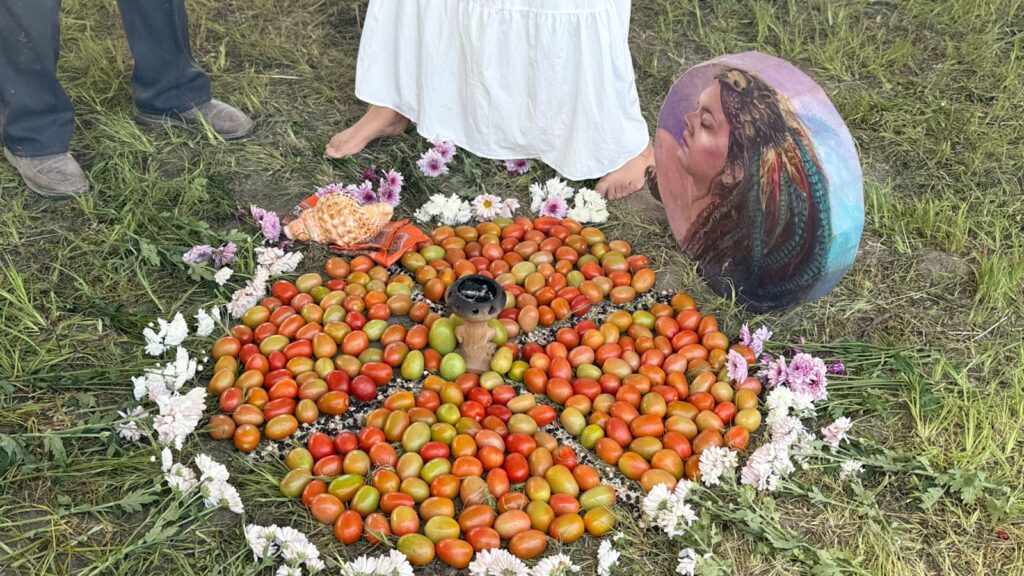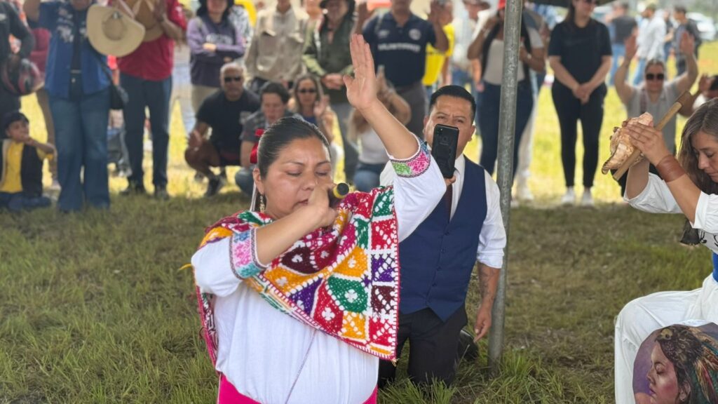 De igual forma los asistentes hicieron el tradicional Tlalmanalli, que significa “ofrenda a la tierra” en náhuatl, para pedir fertilidad y protección a la tierra, usando semillas, flores y plantas medicinales, en representación de los cuatro elementos y los puntos cardinales.
