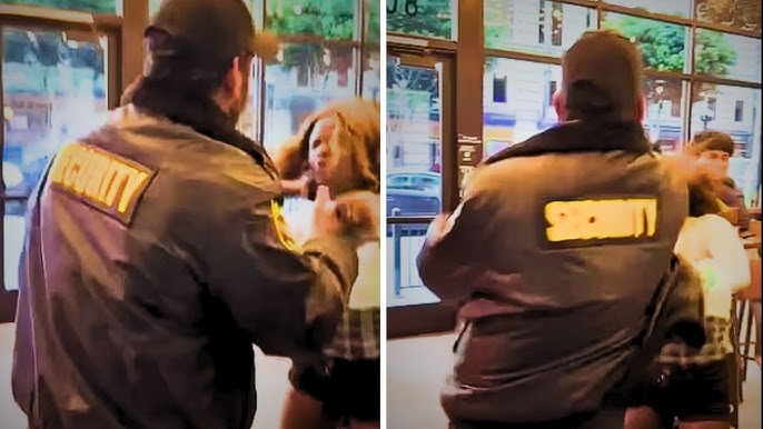 Tras la agresión, la mujer camina hacia el otro extremo del restaurante mientras el guardia la sigue. Se le escucha decir en repetidas ocasiones “aléjate de mí”, mientras que el guardia insiste en que debe abandonar el establecimiento. Finalmente, la mujer se retira del lugar.